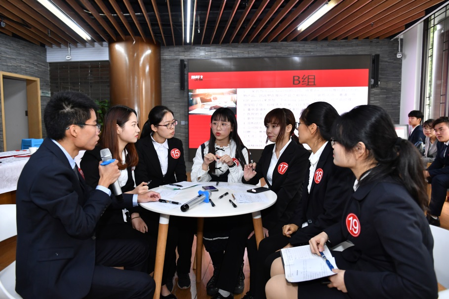 决赛中,14名选手随机分成两组分别上台进行无领导小组讨论,选手们需要对现场给出的讨论议题进行15分钟的自由讨论,最后派一名代表对讨论结果进行陈述。评委根据选手现场表现力,主要就综合分析能力、组织协调能力、人际沟通能力、职业匹配度等方面进行点评和打分,决出一二三等奖。