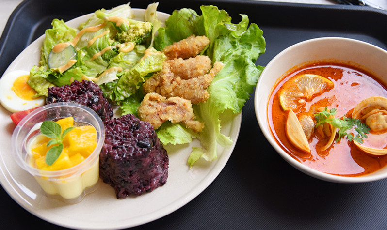 冠军组的套餐由主食搭配三款菜品和一例汤一甜品的形式呈现。