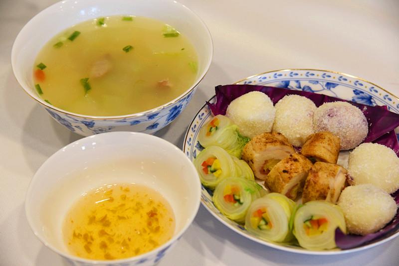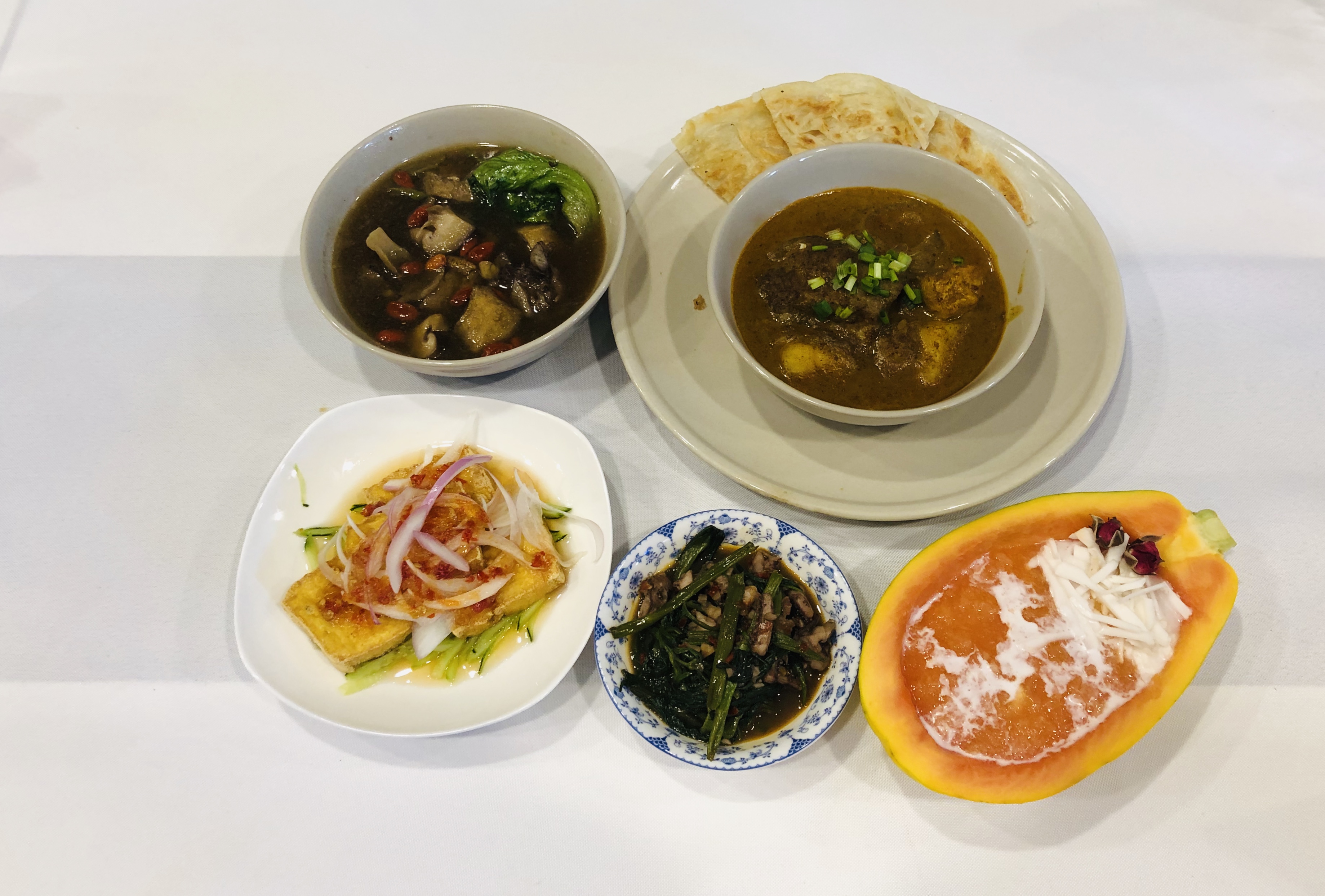 这次大赛还吸引了不少国际留学生参加,由三名马来西亚学生组成的国际留学生队呈现了“热带雨林”套餐,泰式豆腐、肉骨茶、咖喱、椰浆木瓜等菜品非常有东南亚特色。对于缘何想到带着这份作品参赛,队员们这样说:“这份作品寄托了我们留学生背井离乡思念家人朋友的心情,同时感恩来到异国他乡倍受照顾之恩。希望我们可以学成归来,带着中医的理念造福故土,并且力所能及的将中医发扬光大,让世界看到中医的博大精深之处。”最后,这支队伍捧得季军奖杯。