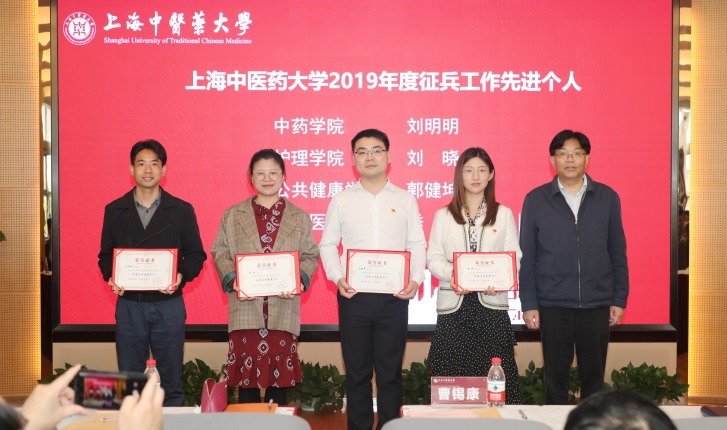 会上对相关单位和个人进行了表彰。曹锡康、胡鸿毅为2019年度就业、征兵工作先进集体和个人以及优秀“云课堂”授课教师颁发了荣誉证书与奖牌,我院荣获2019年度征兵工作先进集体称号,学院征兵工作站站长郭健坤荣获先进个人称号。