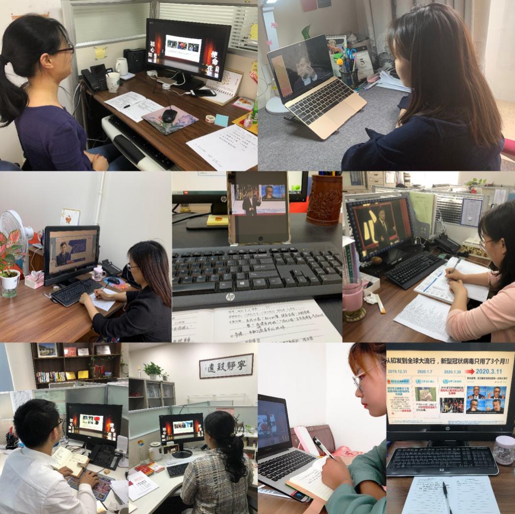 专题党课后,各支部开展线上学习讨论。赵海磊院长表示,在面对危险,与死神搏斗的时刻,医护工作者尤其是党员干部们用他们的言行,诠释出什么是大爱无疆、舍生忘死,这种精神必将激励我们广大党员和人民群众,无惧困难险阻,一往无前。教工党员纷纷表达了倍感鼓舞之情,教工党员刘霞将立足自己的岗位,为学生点燃在线学习的明灯,让他们体验到在线学习的乐趣和优势,也为毕业班学生上好最后一门课程——论文答辩。戎芬老师坚信备好、上好一门线上课程,就是教师们的“战疫”,每位党员都要在思想政治上不断进行检视、剖析、反思,都要经常进行思想政治体检,把初心和使命变成锐意进取、开拓创新的精气神和埋头苦干、真抓实干的原动力。研究生党员林功晟关注到近日国家印发《公共卫生防控救治能力建设方案》,感受到国家政策与措施正在提升公共卫生方面的内容,“2030健康中国”战略也在精神层面上鼓舞着他,身为一名党员,应积极融入了国家的大计划中,成为健康的传播者。