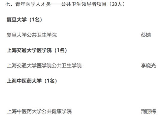 2021年1月20日,经上海市卫生健康委员会、上海市医药卫生发展基金会公布,我院荆丽梅研究员入选2020年上海市“医苑新星”青年医学人才培养资助计划之青年医学人才类——公共卫生领导者项目。
