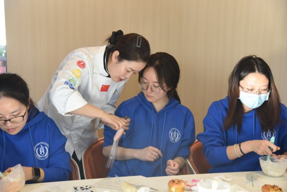 郁慧带领学生们亲身实践,领略裱花艺术,在线条的曲折盘旋、褶皱的凹凸痕迹中感受劳动的礼赠。通过学习相关理论、近距离观察和亲手实践,感受工匠前辈在工作中的专注与创新,在劳动中体悟坚持不懈的毅力与精神。美味在唇齿间留香的同时,加深学生们对劳动的光荣感以及满足感,真正做到匠心留存。