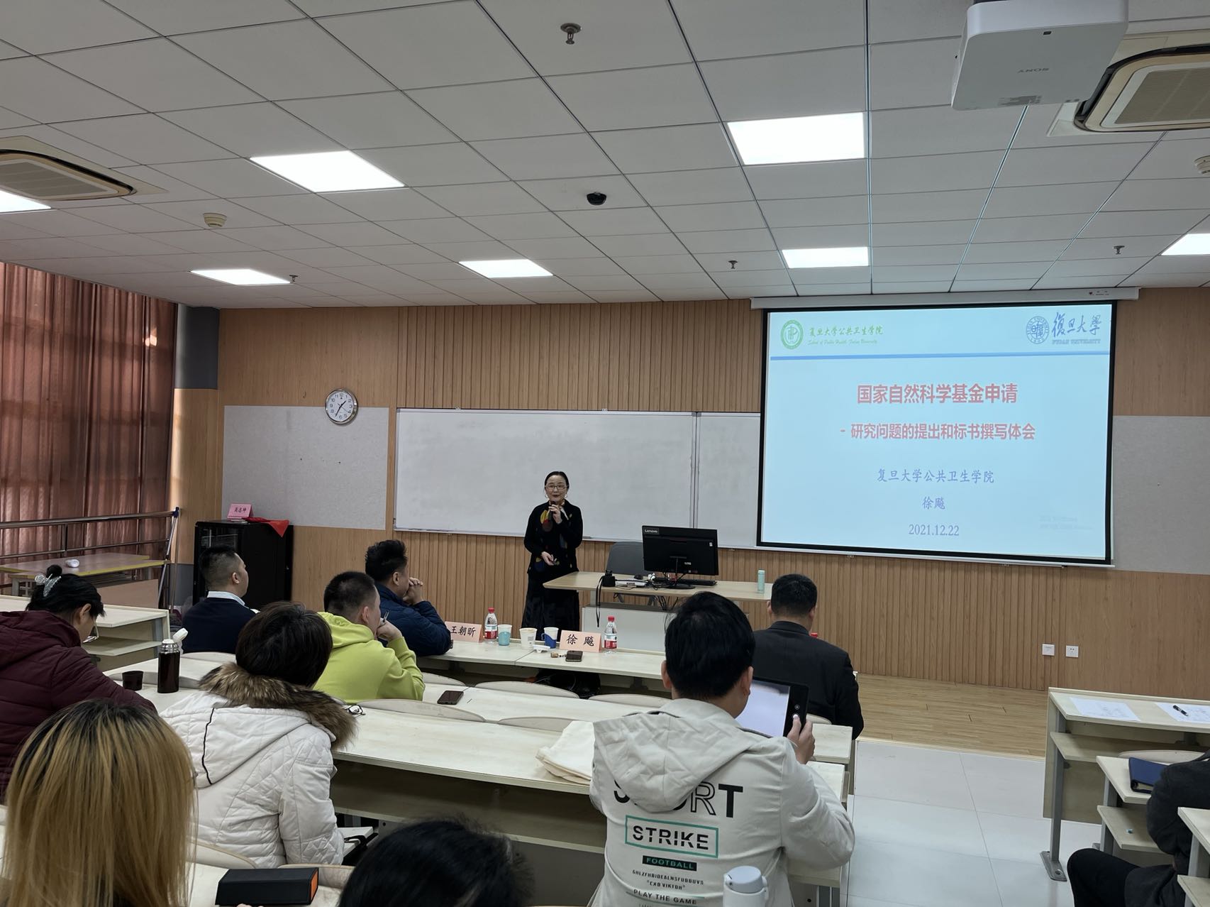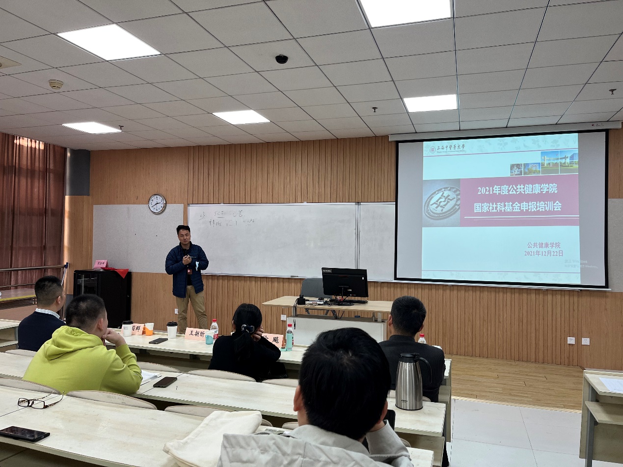 2021年12月22日下午,ylzzcom永利总站线路检测于10105教室举办国家自然科学基金申报培训会,会议邀请复旦大学公共卫生学院徐飚教授和上海交通大学医学院公共卫生学院王朝昕教授来校讲座。学院院长赵海磊、副院长谢国群和学校部分师生参与听讲,并与两位教授进行了交流。谢国群副院长主持培训会。