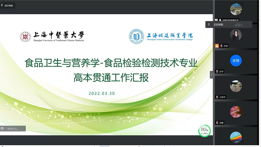 3月30日,ylzzcom永利总站线路检测食品卫生与营养学教研室和上海城建职业学院食品检验检测技术专业展开线上教研联合会议。我校食品卫生与营养学教研室专业负责人许琪老师,孙丽红老师、朱明哲老师和刘霞老师,上海城建职业学院食品检验检测专业负责人刘晓丹老师、肖瀛老师、王春华老师、左迪老师、胡晓霞老师、曲瑞丹老师、许萍老师等参加会议。