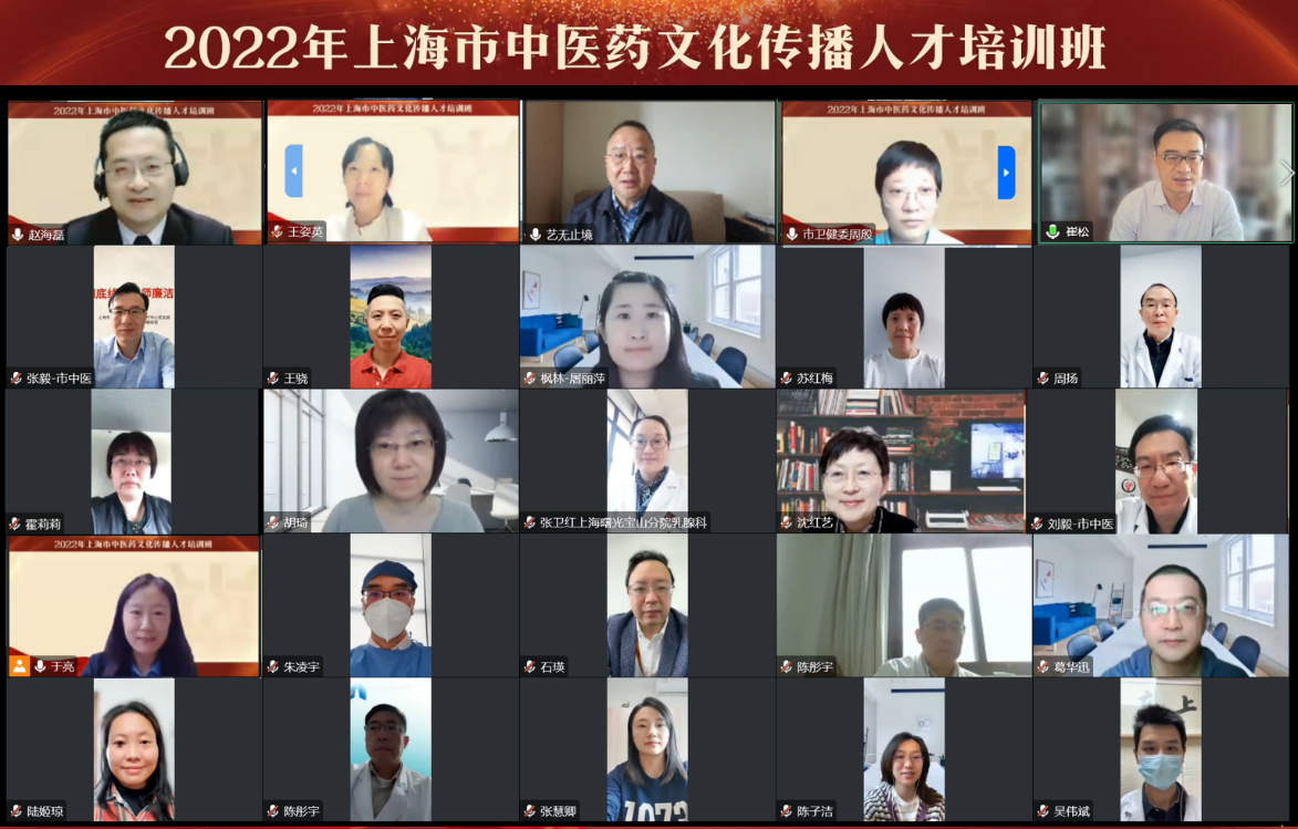 10月7日,2022年上海市中医药文化传播人才培训班顺利举办。本次培训班由上海市卫生健康委员会和上海市中医药管理局主办,ylzzcom永利总站线路检测承办,是为了贯彻落实《中医药文化传播行动实施方案(2021-2025年)》及《上海市中医药条例》,推进中医药文化科普宣传活动的开展,以中医药文化科普巡讲团为培训主体举办的中医药文化传播培训。参加学习的学员有第二批上海市中医药文化科普巡讲团成员和永利首批金牌健康讲师团成员,共计约80余人。培训依托线上学习平台开设课程,所有学员可以同步在线上完成直播学习和回放学习。