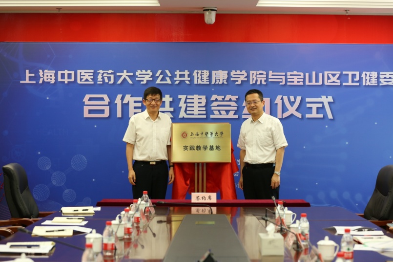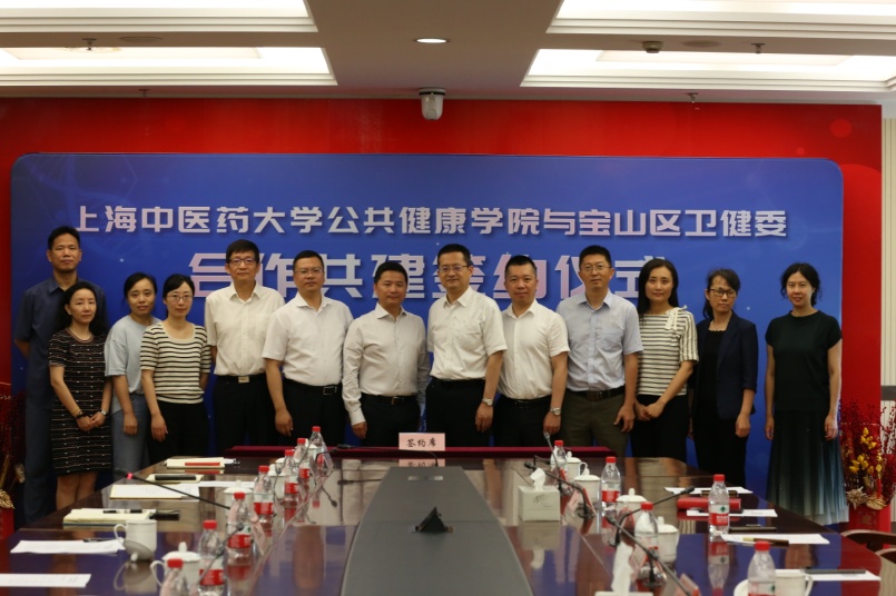 为共同推进校地合作,进一步深化公共卫生学科发展,推动公共卫生与预防医学人才培养,加强中医药在健康管理领域的深入研究和应用,6月27日上午,我院与上海市宝山区卫生健康委员会在宝山区应急指挥中心举行合作备忘录签约仪式。宝山区卫健委副主任李钢、副主任钱晓忠、宝山区疾控中心主任何凡、副主任孟杨、刘效峰及学院院长赵海磊、副院长谢国群、各教研室主任出席本次会议。
