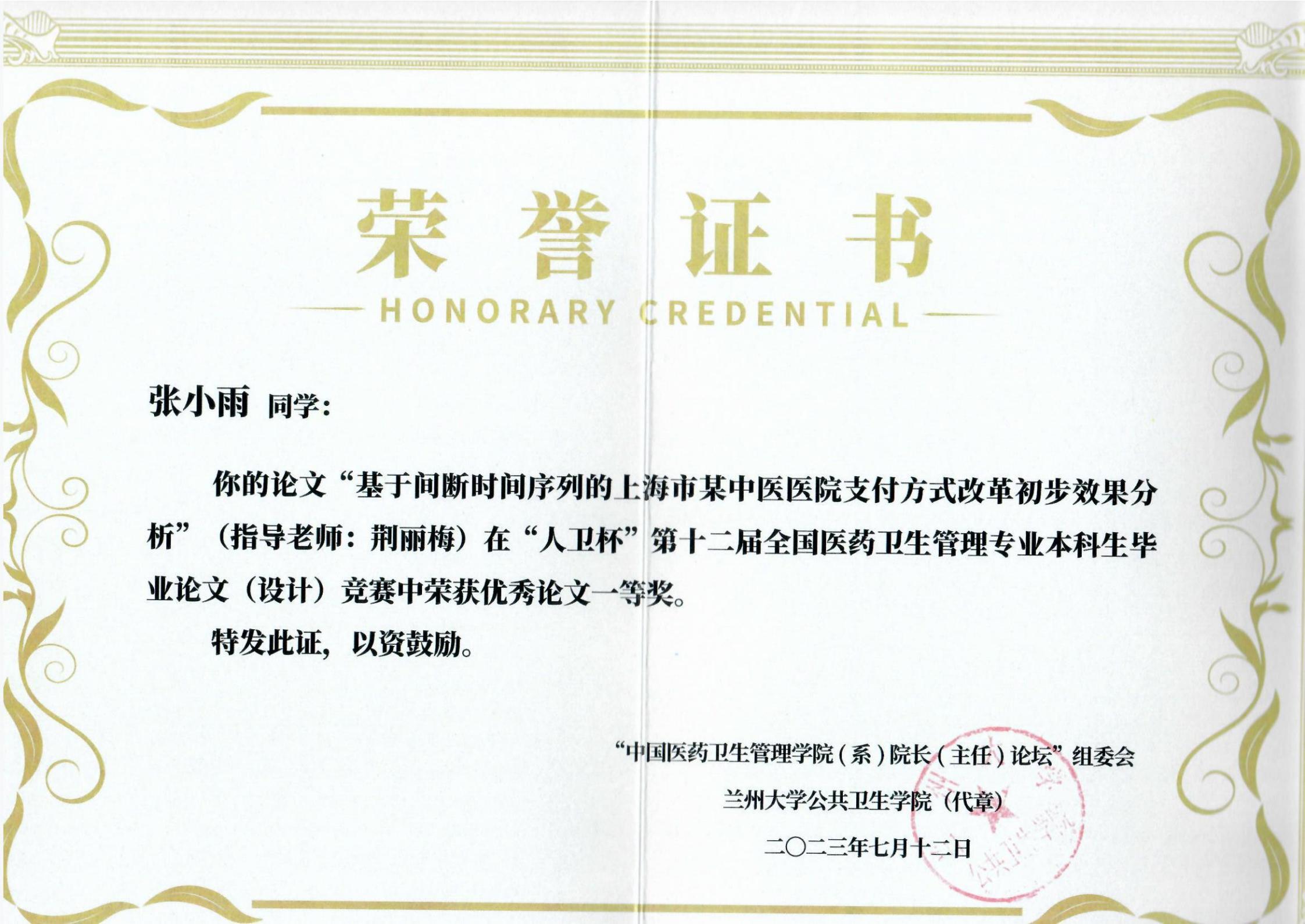 7月11日—13日,第19届中国医药卫生管理学院(系)院长(主任)论坛暨“人卫杯”第十二届全国医药卫生管理专业本科生毕业论文(设计)竞赛在兰州举行。ylzzcom永利总站线路检测组织参赛的3篇本科生毕业论文分别获一等奖(2项)、三等奖(1项),我校同时获得赛事优秀组织奖。