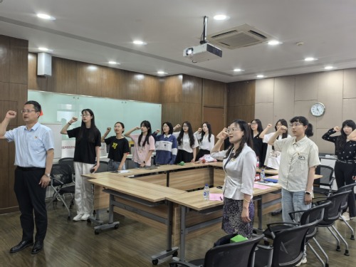 赵海磊带领全体毕业生党员面向党旗庄严宣誓:为共产主义事业奋斗终生!铿锵誓言绕梁回响,激荡着每一位党员的心灵。重温入党誓词,不仅是对初心的回望,更是对未来的郑重承诺。毕业生党员们将以此次重温入党誓词为新的起点,在新的征程上,牢记初心使命,勇担时代重任,用实际行动践行自己的铮铮誓言。