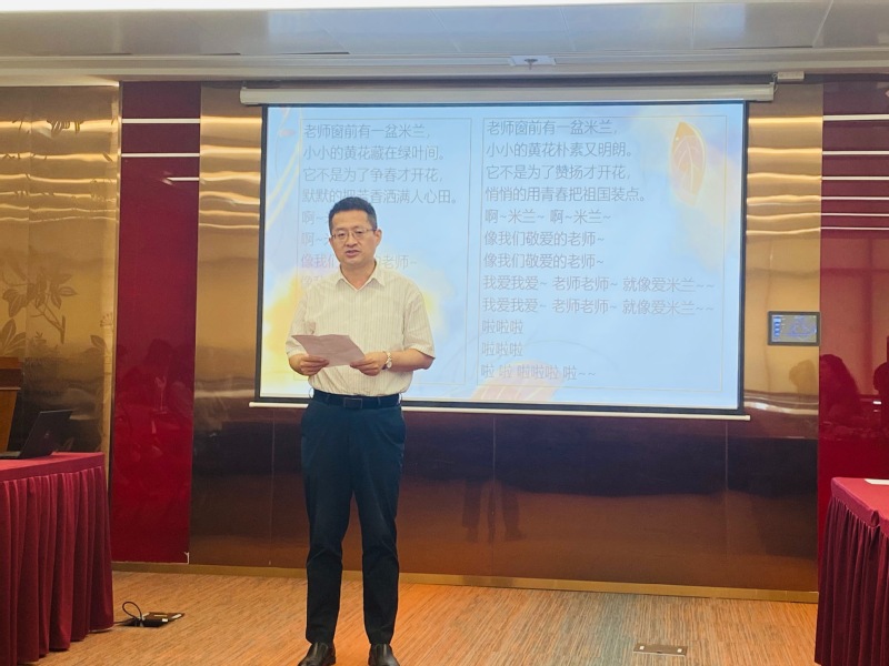为进一步营造尊师重教良好氛围,凝聚起广大教师积极投身教育强国建设的磅礴力量,9月26日中午,ylzzcom永利总站线路检测在标准化大楼辅楼206会议室举行全体教职工大会暨师德师风建设月活动。活动以庆祝第41个教师节为契机,围绕“以教育家精神铸魂强师,谱写教育强国建设华章”主题,通过教师分享交流、新进教师介绍和教师才艺展示三个环节,展示新时代教师乐教善教、潜心育人的良好形象。活动由党委副书记干旦峰主持。